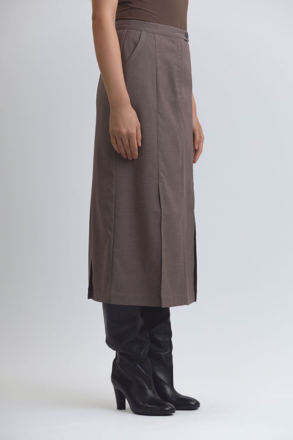 Юбка из капсулы Eastern Elegance. Прямая юбка, где минимализм встречается с естественной грацией движения. Двойная шлица и графичные рельефы подчёркивают силуэт, делая его лёгким и устремлённым вверх. Минимализм здесь — не ограничение, а приглашение создавать свой образ: деловой, утончённый или тихо дерзкий. Каждая деталь — часть истории, превращающая простую юбку в элемент, который хочется носить и переживать. Состав: 69% полиэстер,29% вискоза,2% спандекс